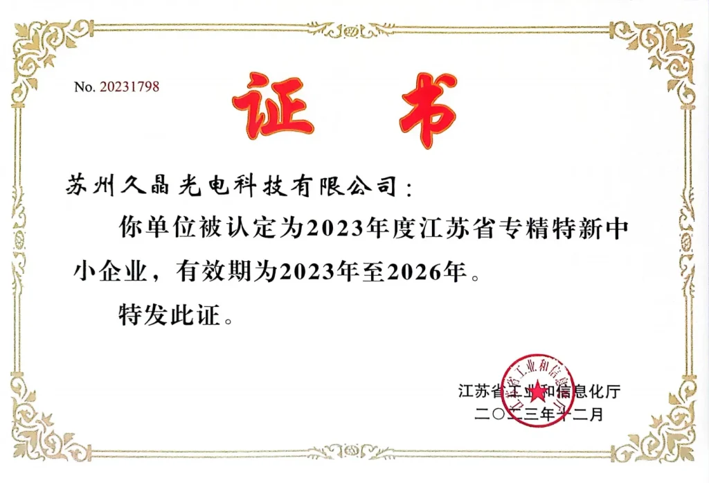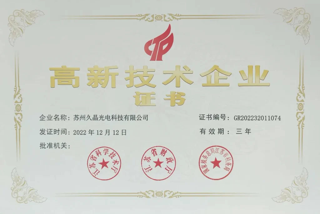We hold IATF16949:2016, ISO9001:2015, and ISO14001:2015 certifications, demonstrating our commitment to quality and environmental responsibility. These recognitions reflect our dedication to delivering precise, reliable, and high-performance optical solutions.